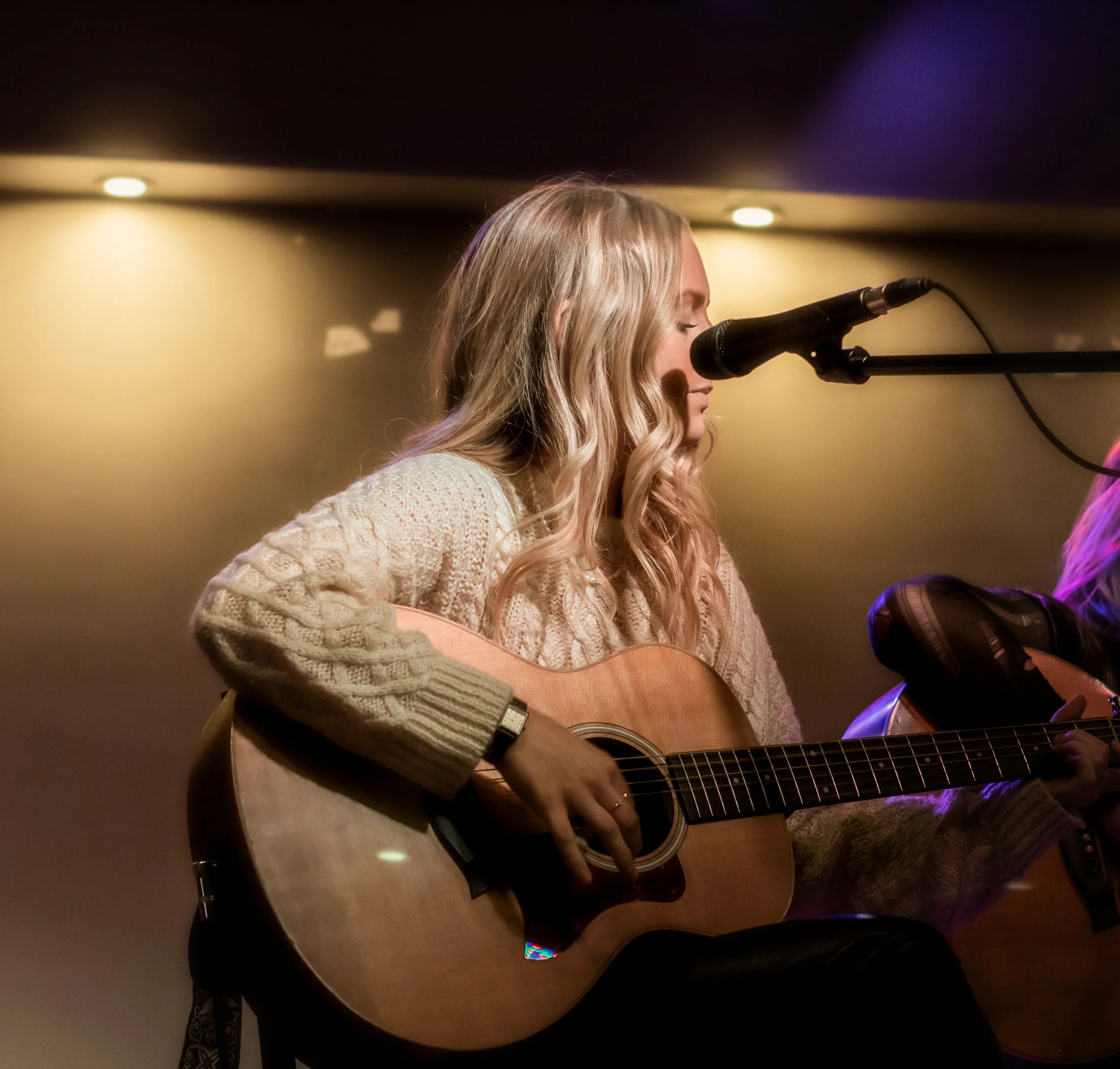 Her music is inspired by a wide range of influences-from the poetic songwriting of Taylor Swift and the classic warmth of John Denver to the timeless charm of Frank Sinatra. Madelyn’s original songs center on love in all its forms, exploring the complexities of human emotion with vulnerability and clarity. Through her work, she aims to connect with listeners on a personal level and foster a sense of community through shared experience and song.